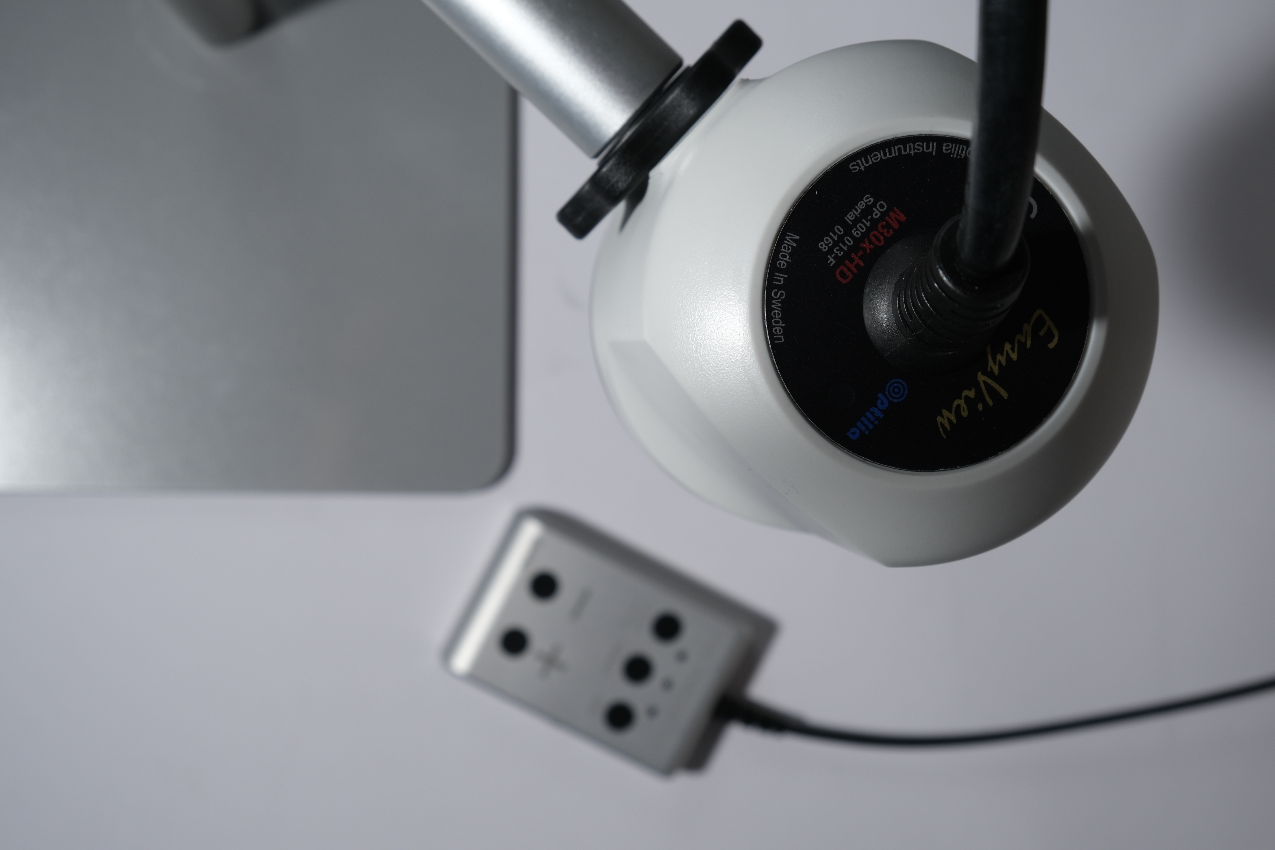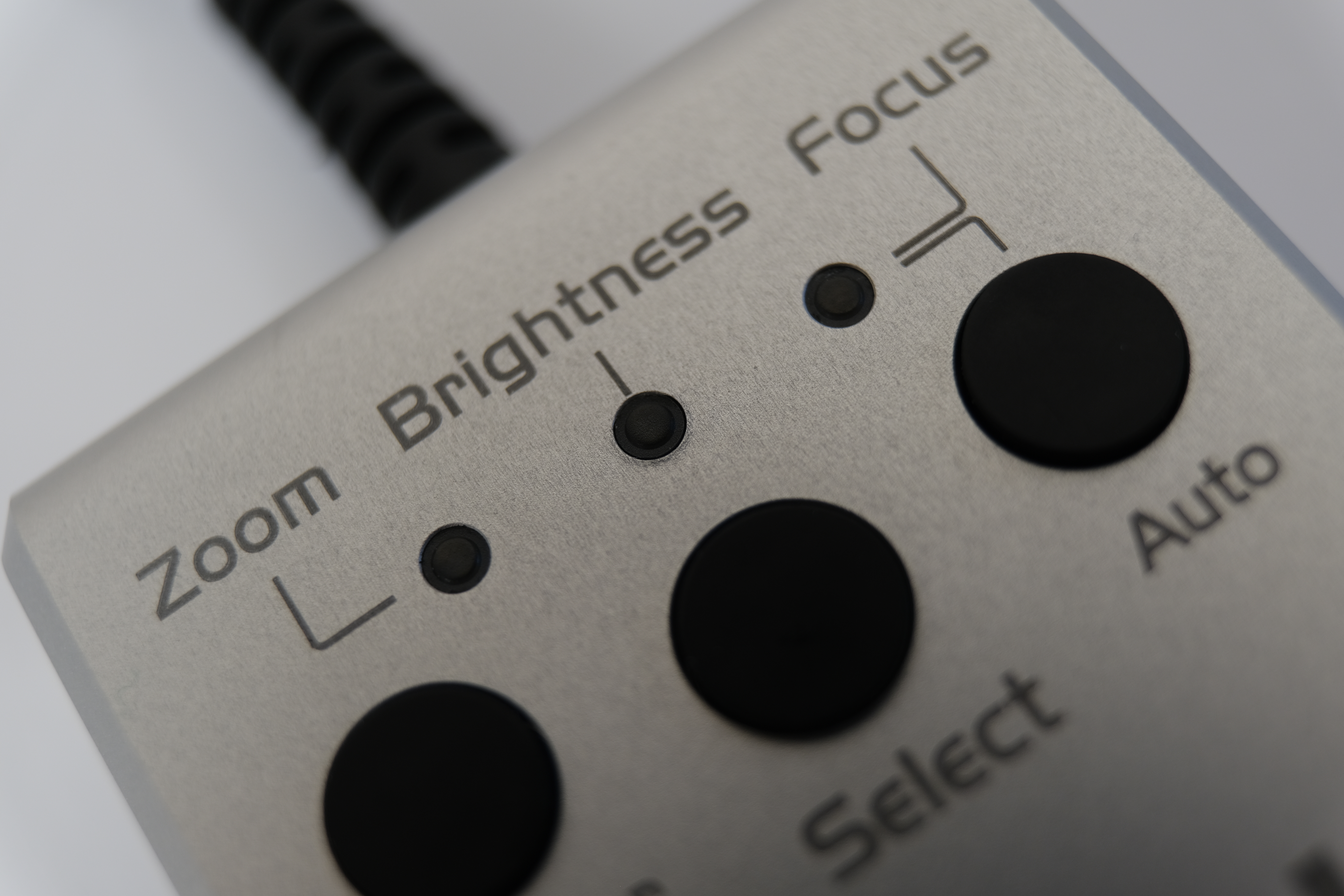 The EasyView version has a working distance of 240mm making it ideal for most bench tasks. It is supplied with a smart custom stand designed for flexibility with a number of positioning possibilities, to give clear and clutter free bench space whilst working on objects under inspection. All M30x series products are presented as discrete plug-and-play systems featuring robust camera housings to suit demanding environments and a neat integrated bench top control unit that connects simply to the desire TV monitor. The control unit provides Zooming, selection and manual control of Focus and Brightness, picture Freeze and a System ON/OFF switch.