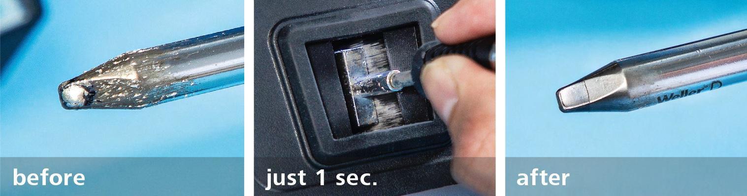 -Universal, fast cleaning of soldering tips and tweezers -Automatic ON/OFF activation -Optimal tip care, extends the life of the tip compared to manual cleaning. -Different brushes for different cleaning intensities -Light bar displays the different modes / Brush LED offers interior lighting -Simple, user-friendly brush replacement -Splash guard in black and grey silicone (can be used to indicate use with lead or lead-free solder -Maintenance-friendly, hygienic emptying of the collection cups -Compact product design with small footprint -Antistatic housing (ESD safe)