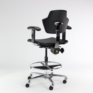 De werkstoel 1501 Spirit ESD is voorzien van een Pur SP (polyurethaan) zitting en rugleuning dat bestand is tegen diverse chemische stoffen en makkelijk te reinigen is. Het uitgekiende ontwerp van de rugleuning zorgt voor meer schoudervrijheid tijdens uw werkzaamheden. Voorzien van een in hoogte verstelbare voetenring ter ondersteuning van uw voeten. Uitermate geschikt voor werkplekken waar wordt gewerkt met ESD gevoelige componenten. - Hoogteverstelling 52-71 cm - Werkbladhoogte 80-90 cm - In hoogte verstelbare voetenring ø 45 cm - Aluminium onderstel ø 60 cm
