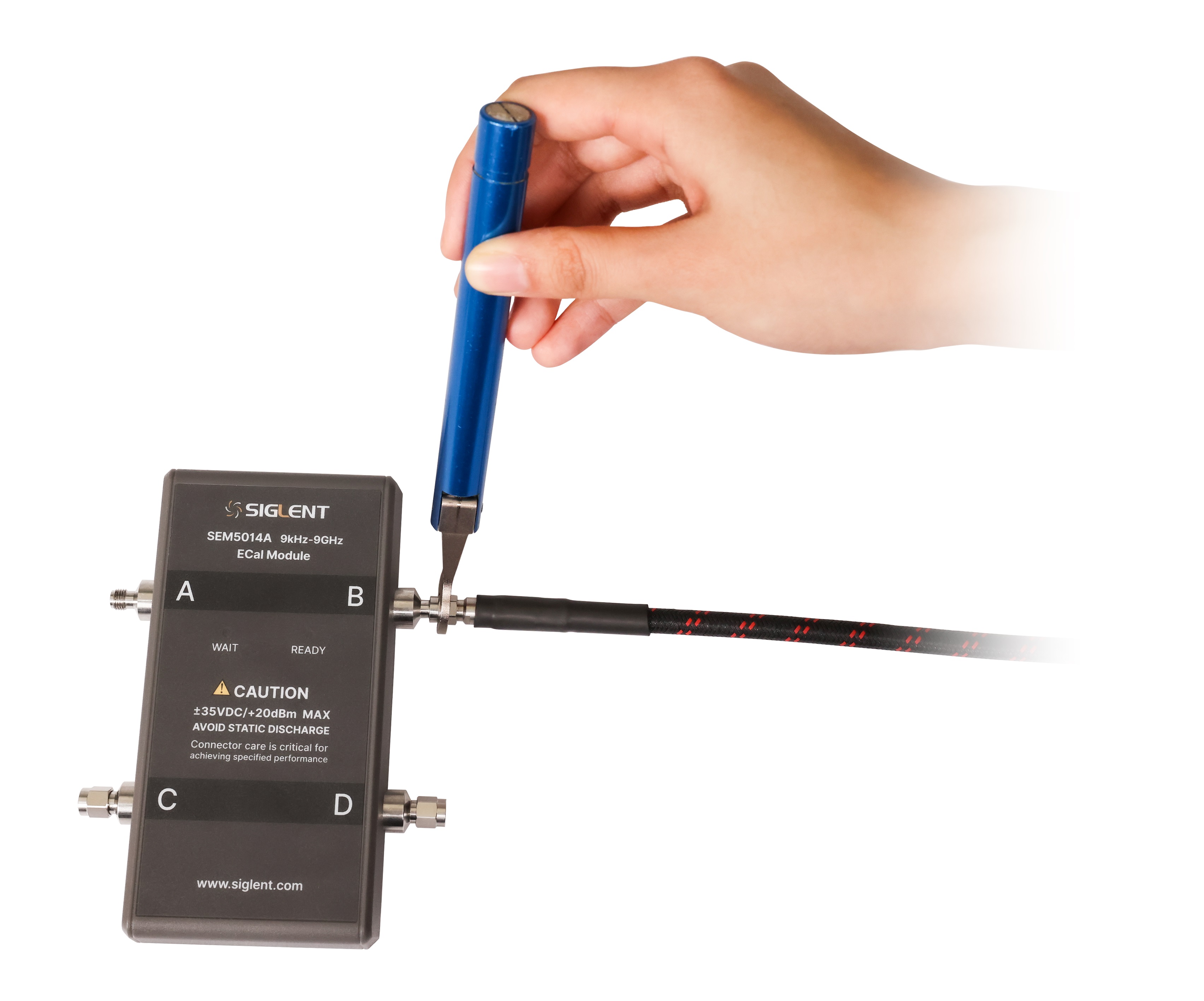SEM5000A series electronic calibrators include 5002A / 5012A / 5022A / 5032A / 5004A / 5014A / 5024A / 5034A, covering the frequency bands of 9kHz to 4.5GHz / 9kHz to 9GHz / 100kHz to 13.5GHz / 100kHz to 26.5GHz, with USB interface for communication and power supply, and the RF connectors come in three forms: SMA, 3.5mm, and Type-N. They are suitable for calibration and error correction of SHA850A series, SVA1000X series and SNA5000A series vector network analyzers of SIGLENT. The SEM5000A series are simple, fast, efficient, accurate, and widely applicable. 2 ports, 9 kHz~4.5 GHz, SMA female