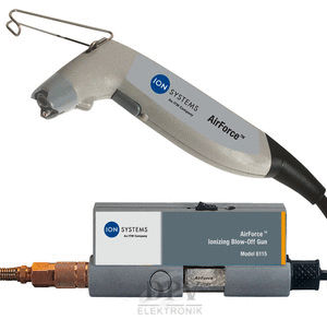 Neutralization of electrostatic discharge during cleaning Ergonomic gun design Flexible, light air hose / power cable low voltage High blow-off power IsoStat® technology Durable dissipative materials Ozone generation < 0.005 ppm Self-balancing of the offset voltage ± 30 V Maximum pressure: 7.0 bar Dimensions: gun 203 x 25 x 76 mm (LxWxH); console 216 x 41 x 76 mm (LxWxH)
